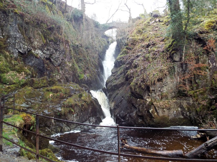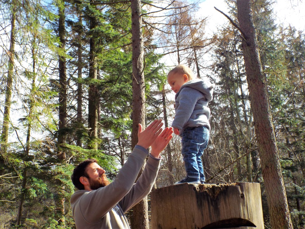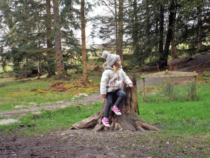 Our first little adventure was a trip out to Aira Force, a stunning waterfall on the north side of Ullswater. We arrived about lunchtime, and as an added bonus someone gave us their parking ticket, saving us a whopping £7 for a few hours parking. We soon found a place to park and with it being lunchtime we decided to get the kettle on, make up a few sandwiches and enjoy a spot of lunch. With our belly’s full we headed off along the footpath, through the trees, up towards the waterfall, stopping along the way to look at the ‘money tree’, anyone that’s been to Aira Force will know what we’re talking about, it’s the fallen tree with loads of coins hammered into it. It wasn’t long until in true Lake District fashion it started to rain, Jack was safe in his Osprey carrier with its built-in rain cover and so was Piper who was wearing a nice warm thick coat, but for us who opted for hoodies it was time to get wet. Luckily, the rain was short lived and we were soon standing on the bridge overlooking the spectacular Aira Force. After a short stop at the top it was time for a steady walk back along the well-maintained path, stopping near the bottom footbridge to have a run around the daffodils.