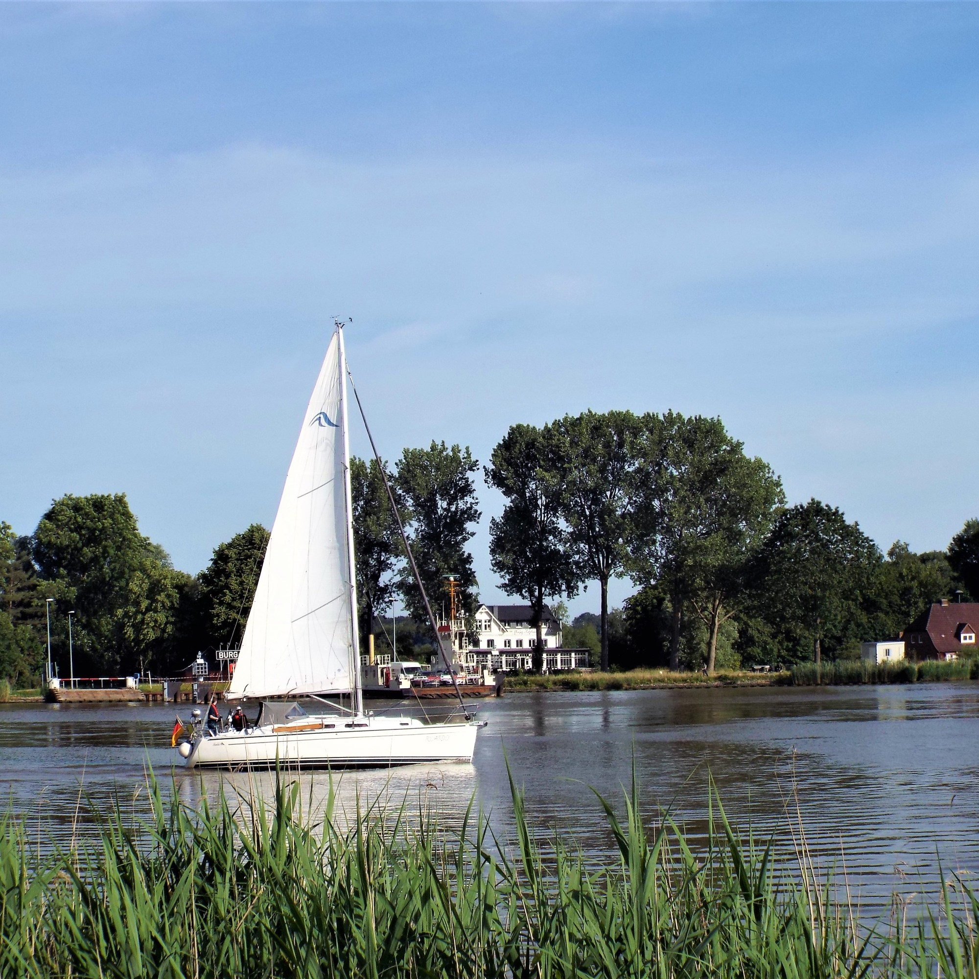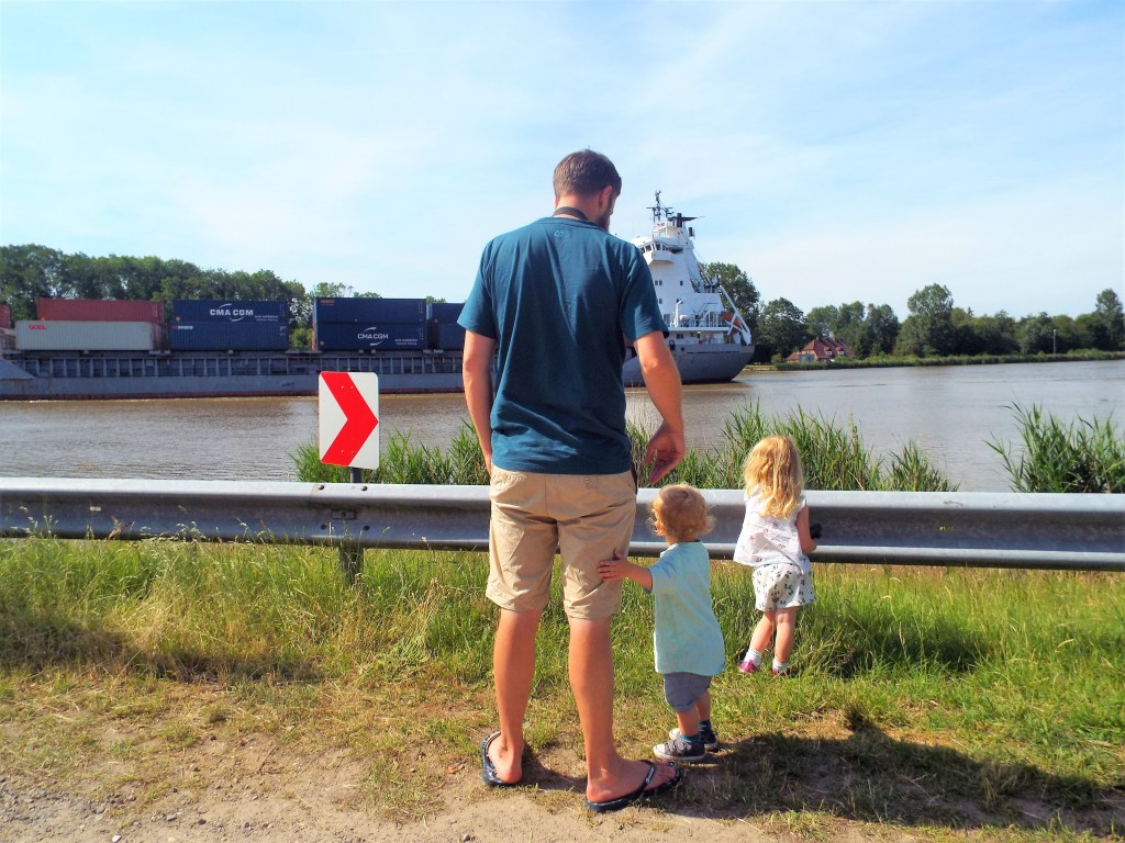We actually planned to stop at another aire 10km down the canal from Burg but that was fully taken, so we found this place and had the best time parked up alongside the canal watching all the different boats pass along, from small sailing boats to massive container ships and even a cruise liner which I happened to spot at 3am in the morning! Jack and Piper were thrilled every time they spotted a boat pass us, which happened every 5-10 minutes. I think we could have all spent another day or week watching all the boats pass by. And to top this stop off was the car ferry we had to use to get to it, and it was free.