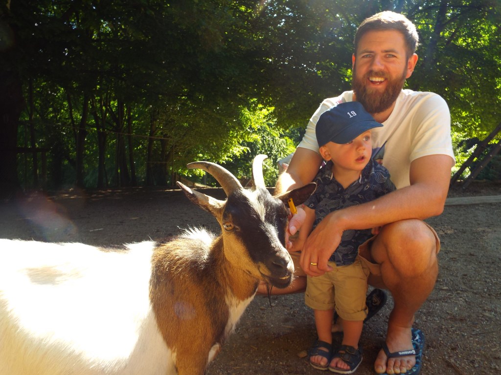 This was more of a touristy spot so our free motorhome parking was a little further out, but we were still in easy walking distance of the lake itself. We spent two nights here as there was quite a bit to explore. The first afternoon we all took a walk and treated the kids (and us) to an ice-cream, and on the second day we split up for some one-on-one time with the kids. Richard cycled to the lake with Piper and they sneakily had a cheeseburger each for lunch, which she teased me about for the rest of the day. Whilst me and Jack stayed behind making a banner for Father’s Day which was the following day. We re-grouped in the afternoon and headed to the wild-park down the road to see some goats, chickens and deer.