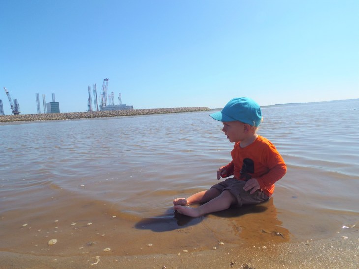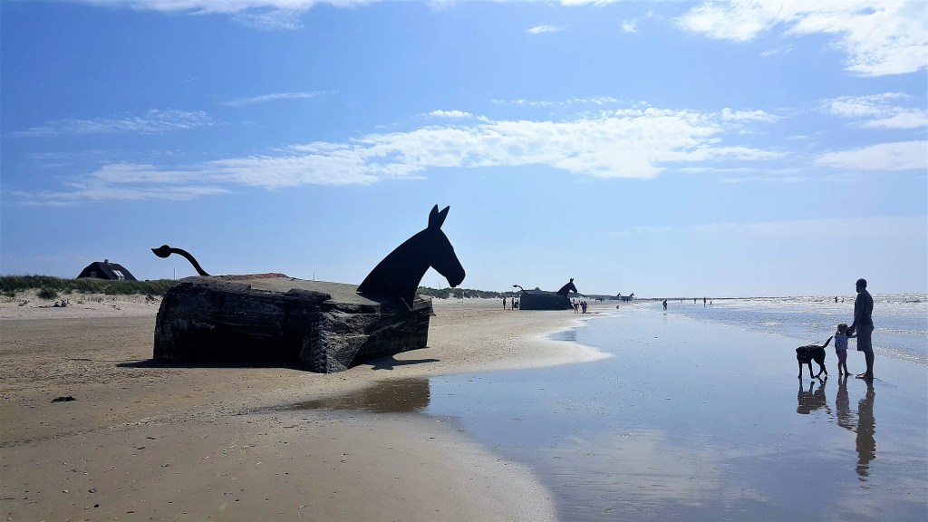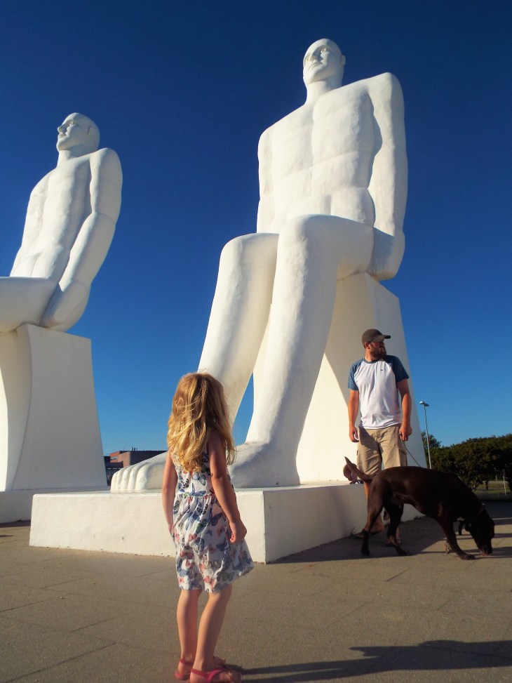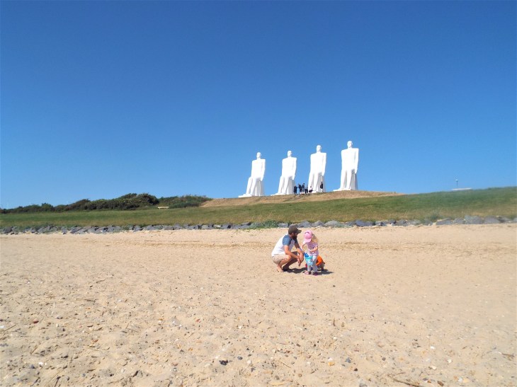 That same afternoon we headed to the coast to see the ‘Men at Sea’ – four massive statues that sit alongside the sea as if they are watching guard. In all honesty, we paid little attention to them at first as the kids made a beeline for the water, more interested in building sandcastles and having a splash around. It wasn’t long before Jack fought off our hands for some solo running in the shallow water and not long after that he was soaked right through. The tide was going out which helped us to spot some tiny fish swimming in the shallows and Piper used her bucket to collect them up for a closer look. We spent the night wild camping next to the statues and breath-taking sea views.