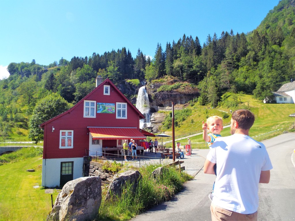 Moving on we made our way along another Norwegian Scenic Route called Hardanger before stopping by the roadside at a picnic spot for lunch. We were right by the fjord and with the sun glistening down on the turquoise water, it couldn’t have been any more perfect. Or could it? As 10 minutes later, we were lucky enough to spot some dolphins swimming by. Richard ran back to the motorhome to get his binoculars and I tried to capture some stills on the camera. Unfortunately I couldn’t get any good shots of the dolphins, but nevertheless, it was still awesome to see.