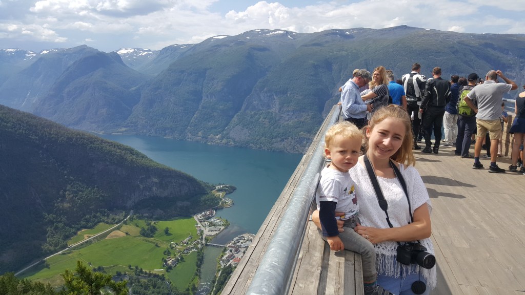 On this particular leg of the journey, we were planning on driving through the world’s longest road tunnel as we thought that would be a pretty cool thing to do. We chose to drive up to the Stegastein viewpoint near Flam with the intention of coming back down and going through the tunnel to continue our journey. But that didn’t quite go to plan. The steep mountainside road was very narrow, parts of which didn’t even have a barrier, making for a very nerve-racking drive and there were a few times that I had to cover my eyes. Obviously, Richard was driving, not me. I’m definitely not brave enough for that! The viewpoint at the top made it all worth it and it was incredible to see how high up we were. But the thought of having to drive back down that road didn’t fill either of us with much joy, so instead, we continued on over the top of the mountains.