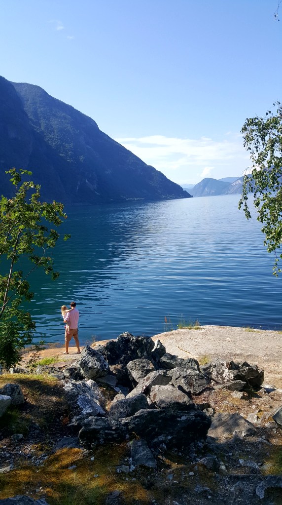 Our final destination that day was in a big rest area right by the most gorgeous fjord, it felt heavenly and it was stuff like this that we had dreamed of! We played outside and ate dinner outside, making the most of admiring the beautiful scenery and for the 2nd time in Norway we were treated to the wonderful sight of wild dolphins swimming. Unlike a lot of other stops, we didn’t rush off that morning and instead we lounged about, cooking up homemade pancakes and ate them outside.