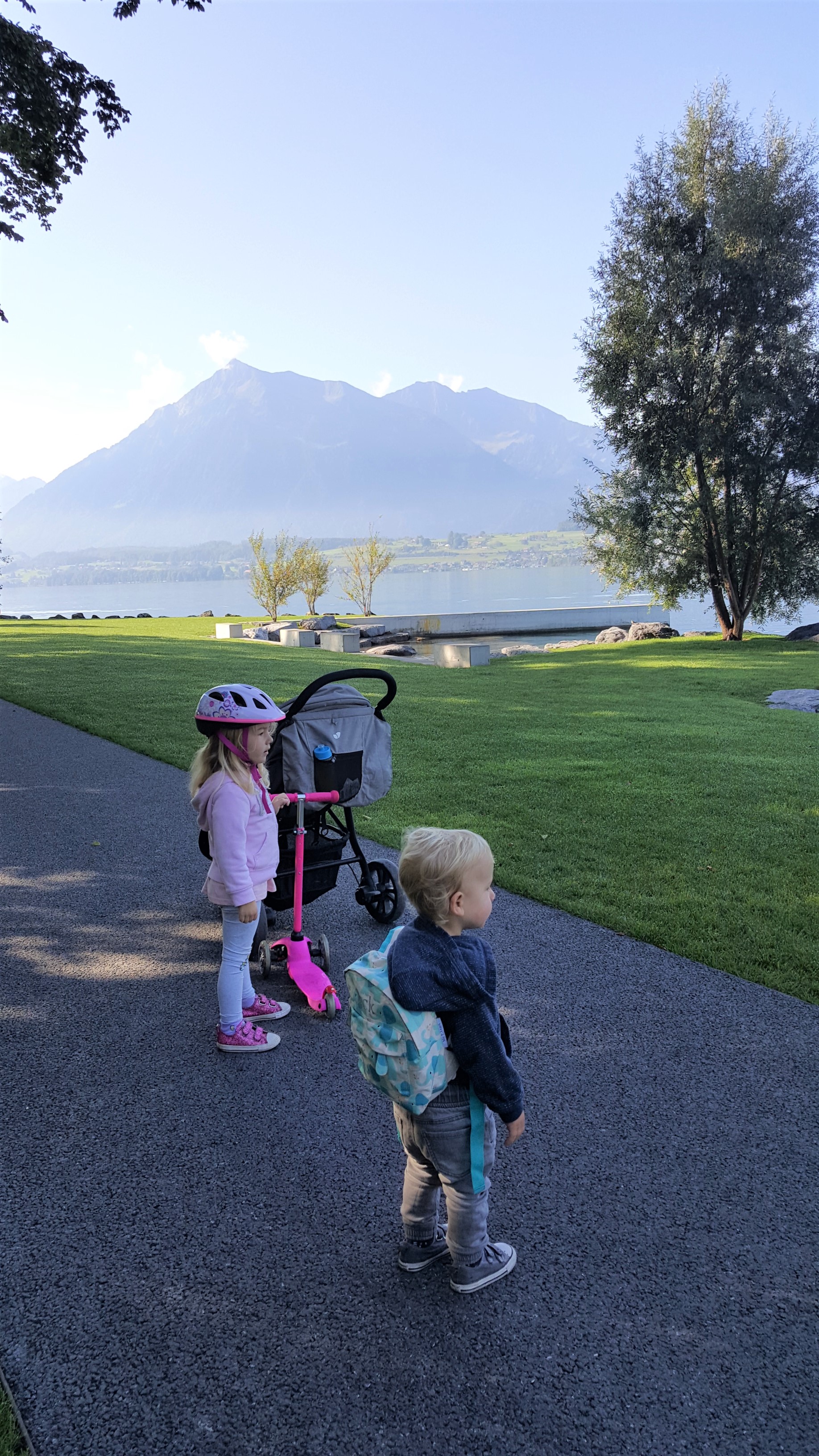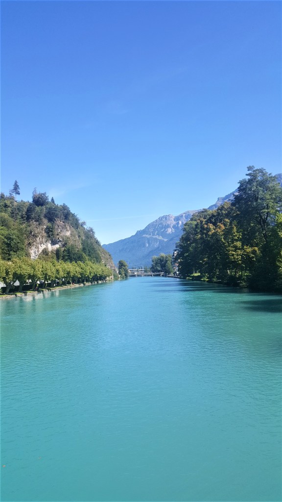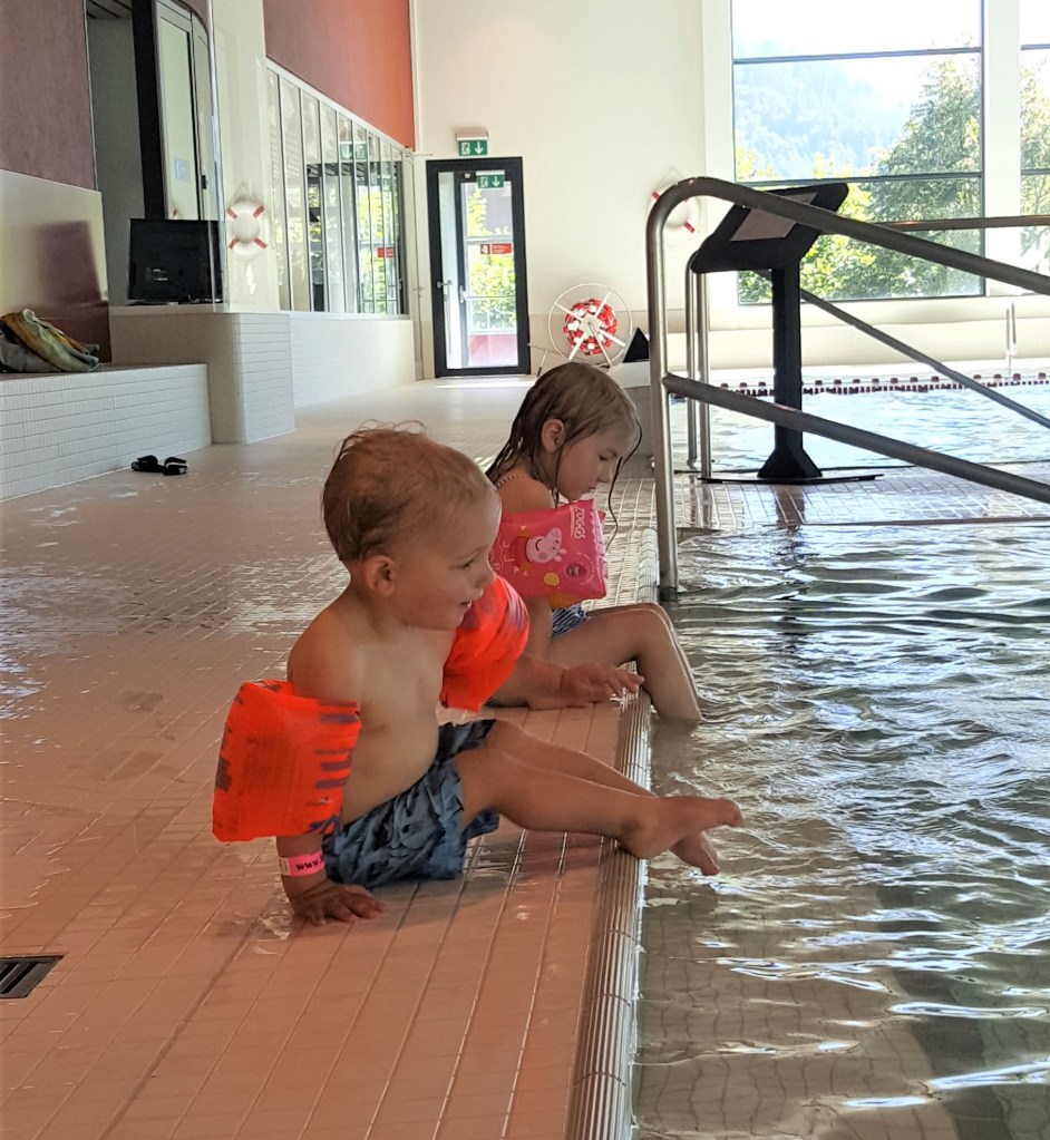 After lunch, we hopped on the ‘free’ bus into Interlaken and headed to the swimming pool for some ‘free’ swimming, stopping along the way to once again admire the colour of the water here! In contrast to the very busy centre, the swimming pool was very quiet, with only a handful of other people in the pool. Whilst there wasn’t a fun toddler section, there was a children’s pool which was only 0.6m at the shallow end. With pippy now confident she can ‘float’ with her armbands on without any help, and Jack able to stand up and splash about we had a really good time playing around. And with it being free for us to use, it would have been silly not to make the most of it!