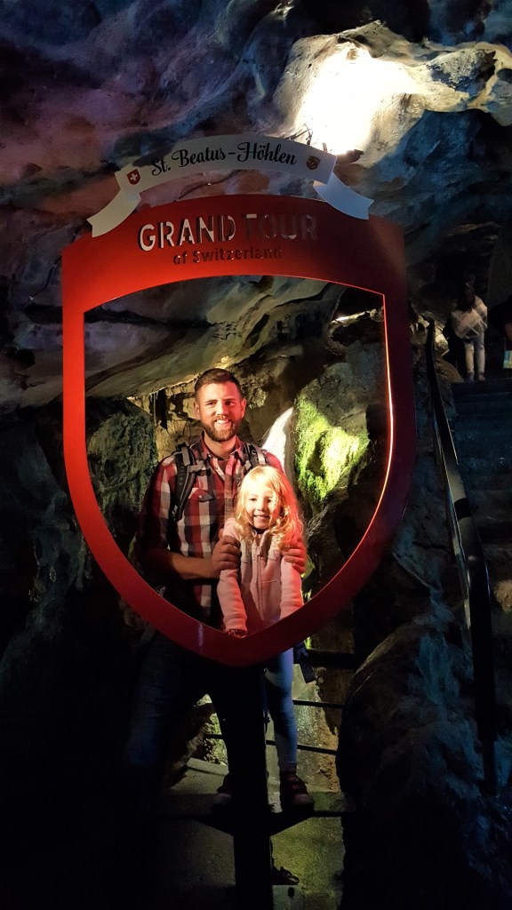 Next stop was St Beatus Caves, we parked up in the main parking lot and ignored the signs that said ‘no motorhomes’ since we hadn’t planned to stay there overnight. The caves were incredible! Richard started off by carrying Jack in his carrier on his back, but we soon got Jack out for fear of him bumping his head on the low cave ceilings. Piper was slightly nervous as we entered the caves, but that’s understandable since this was her first ‘caving’ experience. To top off a very busy day, we hopped on the free bus to the centre of Interlaken, for a little evening stroll.
