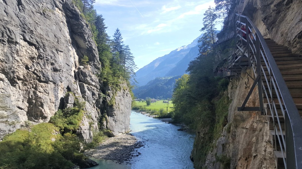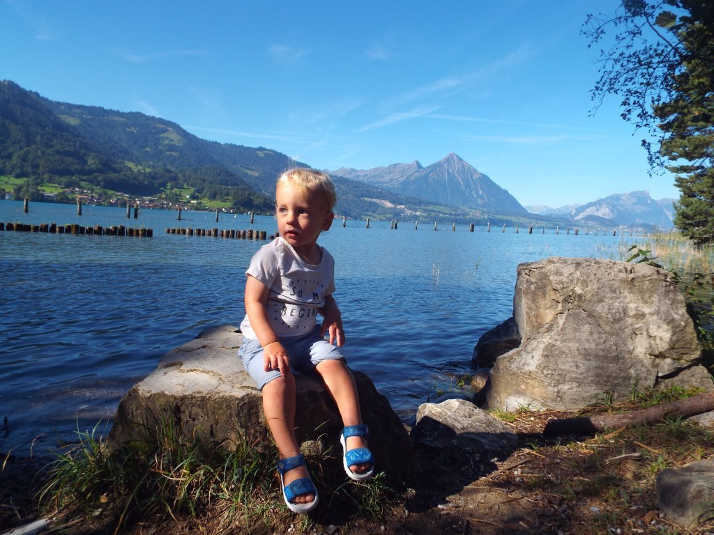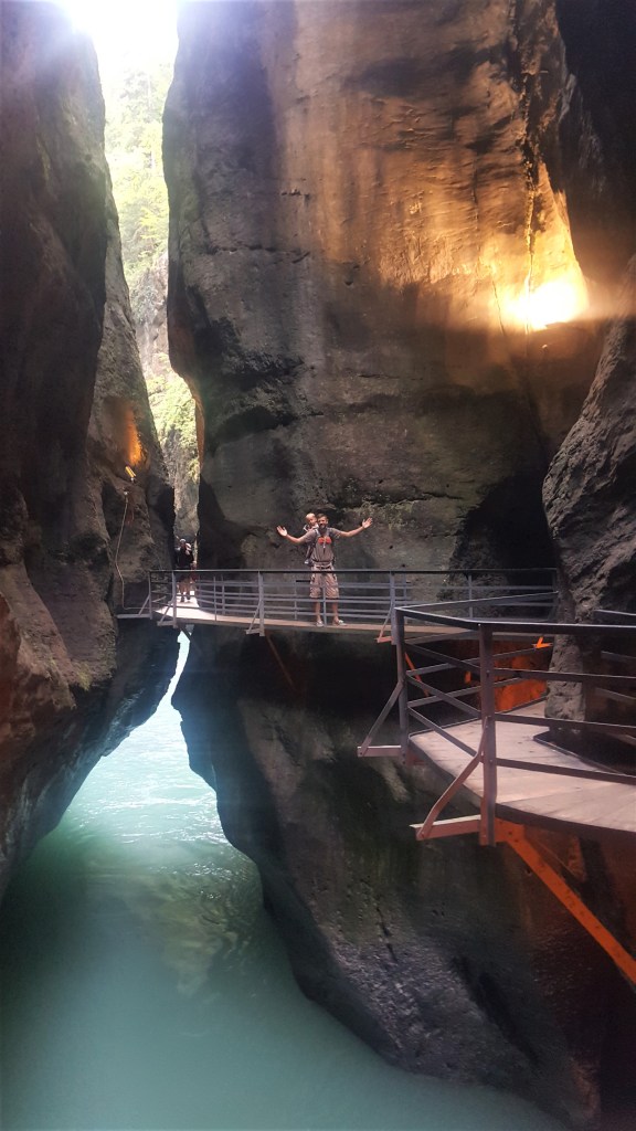 After 3 nights, it was time to leave our campsite. We don’t usually spend more than a night or two in the same place, so after 3 nights on a lovely pitch with beautiful views and the benefit of wi-fi, we were feeling quite relaxed. Moving out of the region, we stopped off at Aare Gorge at the other end of Lake Brienz, another lake with stunning turquoise waters! It cost us 9 euros each (per adults) and the children had free entry, which is one of the benefits of travelling with toddlers! We weaved our way along the 1.4km gorge path, marvelling at the stunning rock formations and the pure beauty of it.