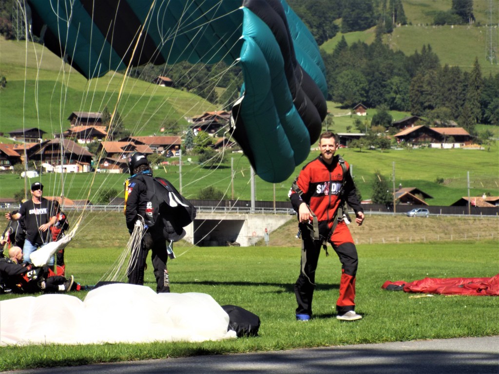 “It’s been 13 years since I’ve done my last tandem skydive which was in Cairns, Australia and ever since I’ve thought about doing another. When we decided to go travelling, I thought this would be the perfect time to do another skydive in another amazing location, and where could be better than over the Swiss Alps. The day had come and we headed to the airport about 25 minute drive from Interlaken, I signed in and was soon undertaking the basic ground training. My name was called out, it was my tandem master, a long-haired Aussie who was full of jokes. We kitted up and made our way to the plane, where along the way he told me about how experienced he was, all 2-weeks of it (a joke, I hope). We were soon in the sky enjoying the scenic views and my tandem master was still cracking the jokes, this time relating the coming jump to Brexit; “Brexit might happen, it might not happen. Just like the parachute, it might open, it might not open, we’ll have to wait and see” he said, making me laugh. The engine stalled and the plane door opened and one by one people started jumping. We shuffled to the door and I had a good look at the ground below before… We were out, falling at 120mph, looking back at the plane as we spun through the air. Just 45 seconds and 8,000ft later he pulled the parachute and the views of Eiger, Monch & Jungfrau as well as Mont Blanc in the far distance took shape. On the way down he decided to undertake some hard turns, the tranquil flight once again became an adrenaline filled experience and before I knew it we were coming in to land. Would I do it again? Yes definitely”.