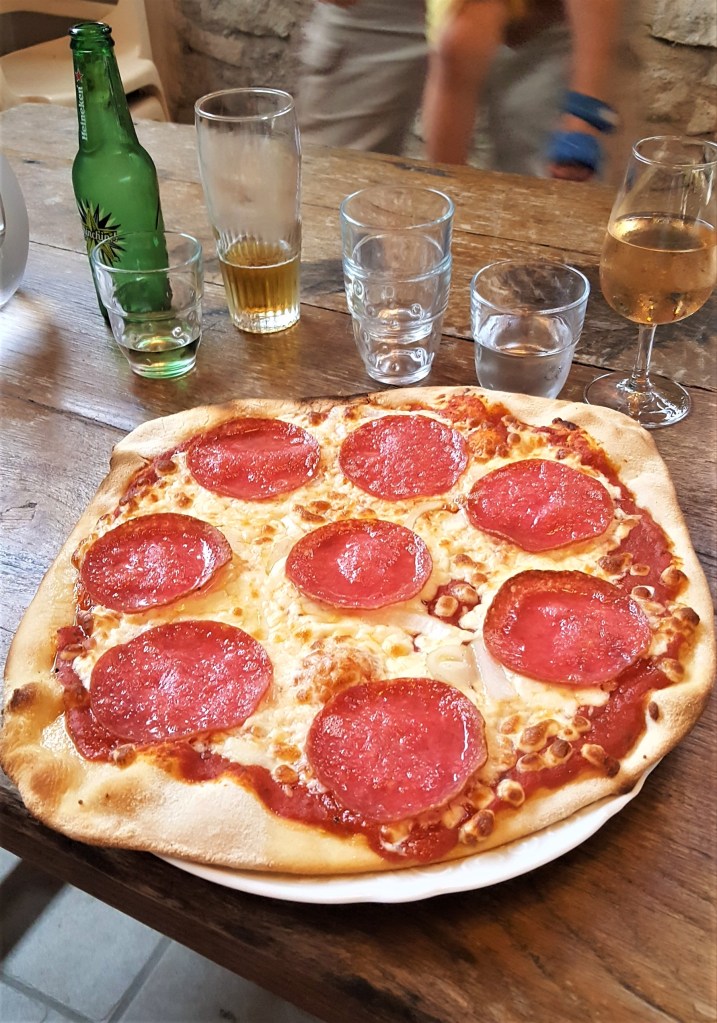 For dinner, we headed over to the small, but cute on-site snack bar, where we indulged in pizza and cheeseburgers, washed down with a glass of wine for me and a beer for Richard. All very delicious and very good quality! It was then back to the motorhome to get the kids to bed, so we could max out on the wi-fi and binge watch British television shows on YouTube, a pure novelty for us as we have no TV and only occasional have wi-fi when travelling on the road.