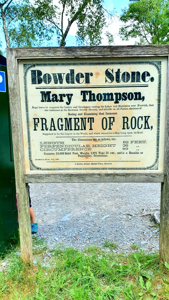 Paid car parking at the Bowderstone National Trust Car Park (CA12 5XA). We paid £4.50 for 2 hours, which was enough for our walk, although if we had been able to spend longer playing down by the river, then we would have needed to pay more. I believe it is £7 for an all day parking ticket. It’s only a 15 minute walk to the Bowderstone from the car park, although we extended our walk a little further so the kids could play in the River Derwent.