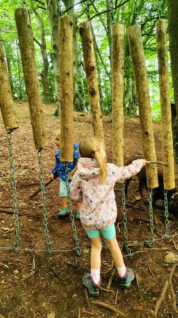 Woodchester Park is home to several different walking routes, some of which pass the boathouse and the chain of lakes. But on our visit, we chose to follow the play trail as we knew this was something the kids would really enjoy. It was around 2 miles long, but with the kids busy playing along the way, 2 miles comes and goes in a flash. If you follow this trail you’ll come close to Woodchester Mansion, which is an interesting piece of architecture worth a closer look. So make sure you take a left turn to check it out before returning along the trail. It is a gothic style mansion which was constructed in 1870, but to this day never finished and never lived in.